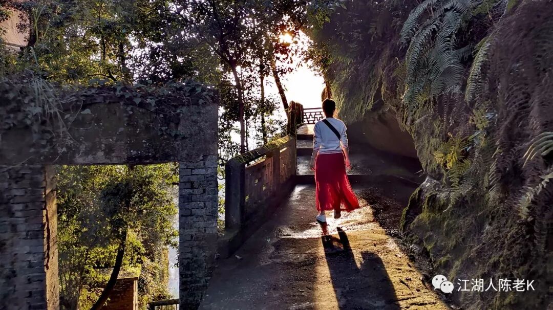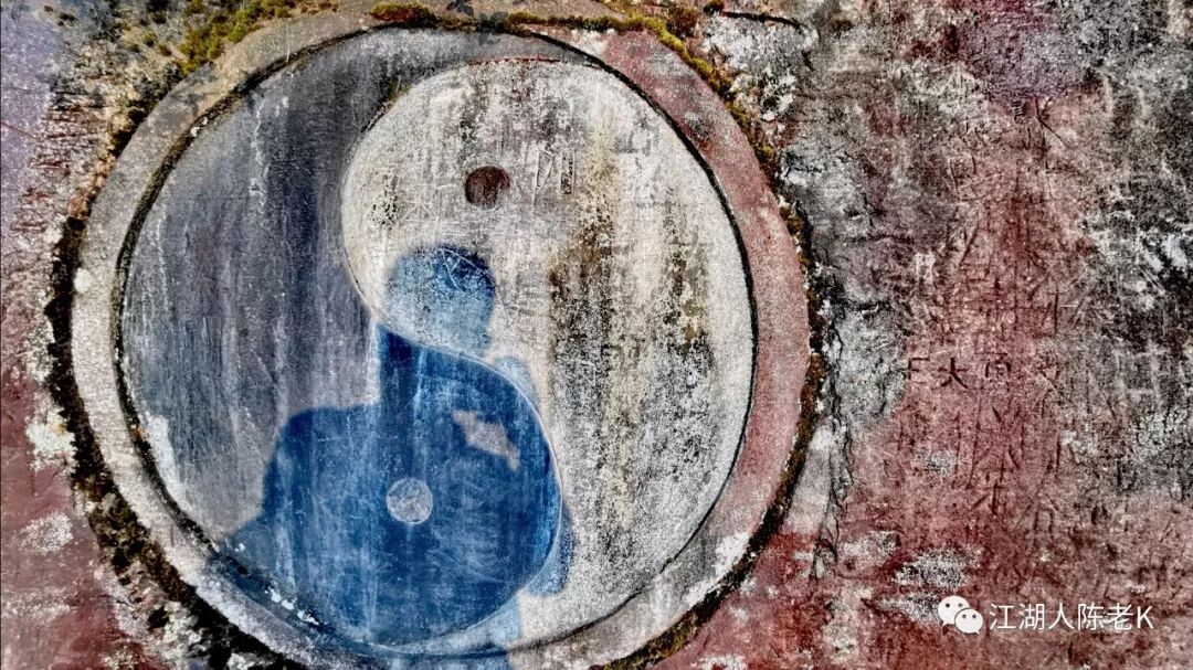 斜阳穿透空气,将自己投射在崖壁上巨大的太极图案当中,也许据此可以沾点道家的灵气。