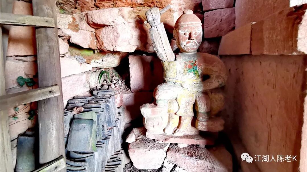 沿着绝壁护林小道穿行了二十分钟的样子,刚好遇到了一座山间小庙,基本上已经荒废,残存的雕像看起不晓得到底是怎么一个状态。
