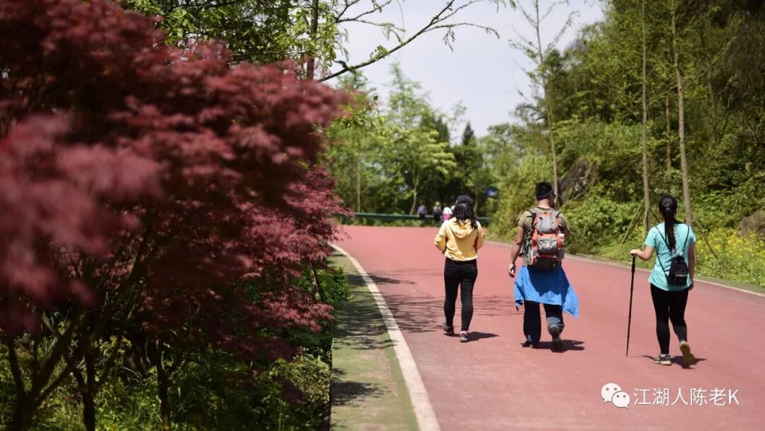 小庙下来的道路虽然全是水泥步道,走起来不是那么舒服,但是照相却还很是漂亮,于是乎此行年纪最大的男性被我手机活捉。