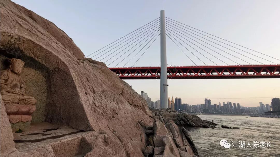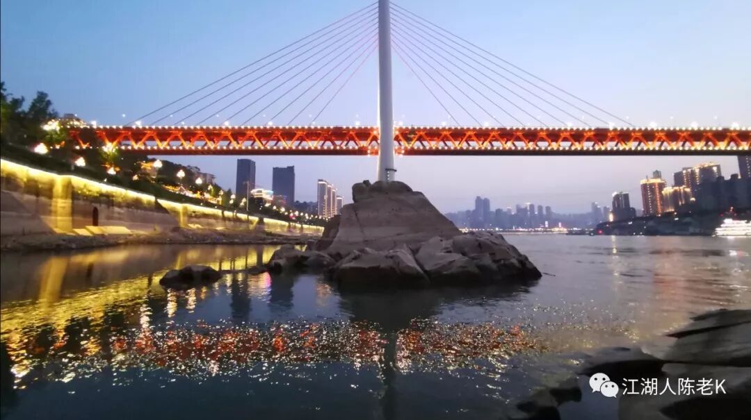 离尘告别城市的喧嚣,聆听江水拍岸的声音,沉浸在相对安静的世界,感受“惊涛拍岸”的意境,打望立体山城的挺拔与雄伟……”