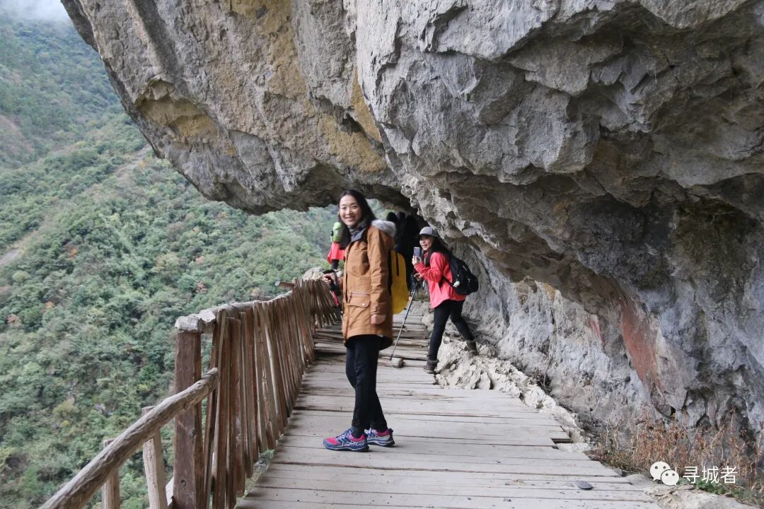 原本绝壁上有开凿的小道,但是通行相对比较困难和危险,为了确保安全和方便,当地人就地取材用木头和铁钉组合修建了这条悬崖栈道。