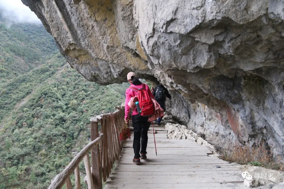 古栈道巧妙的因势就利,既搭木桥又立支撑,既设围栏又依绝壁,最终成就了这幅绝壁栈道的奇观。