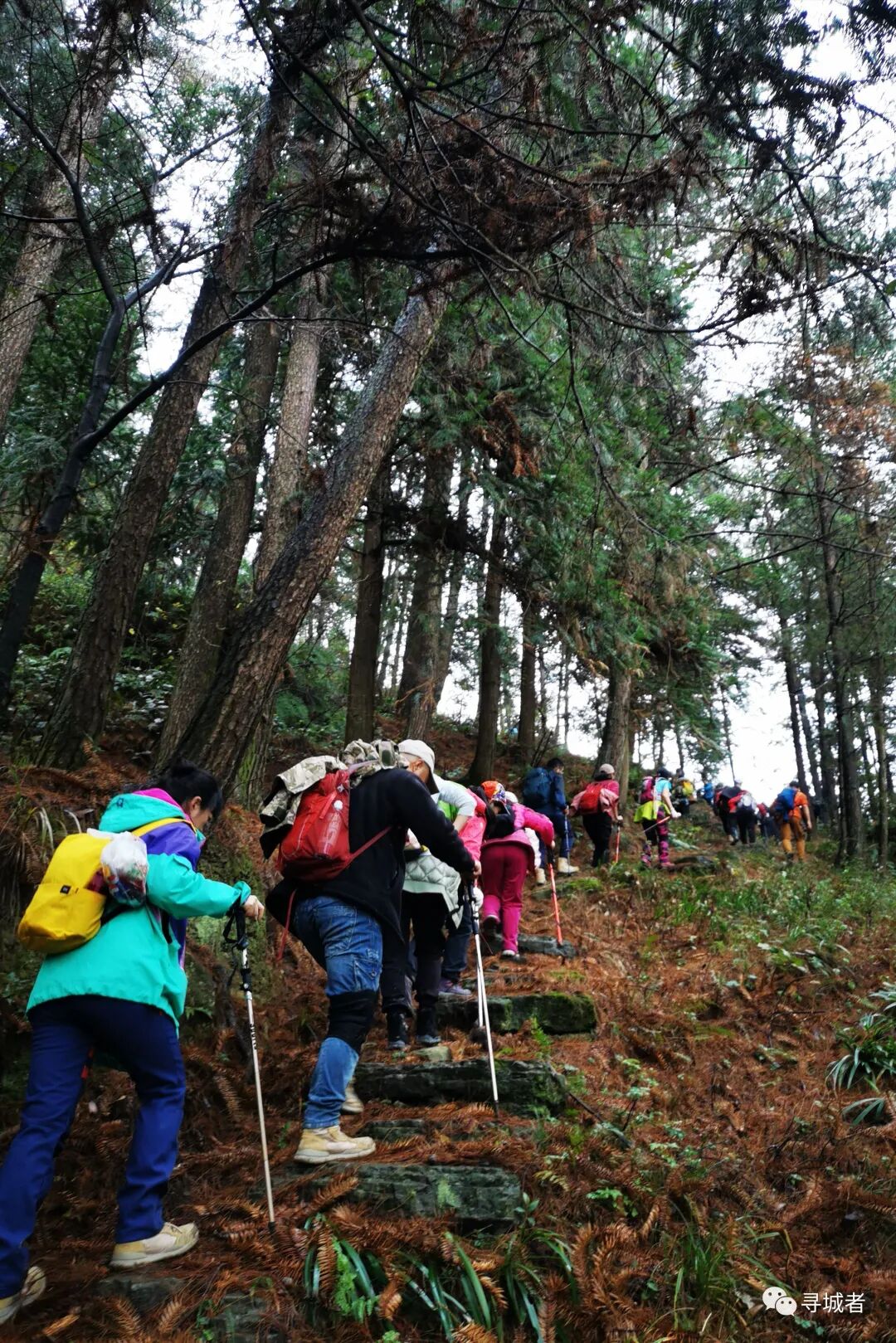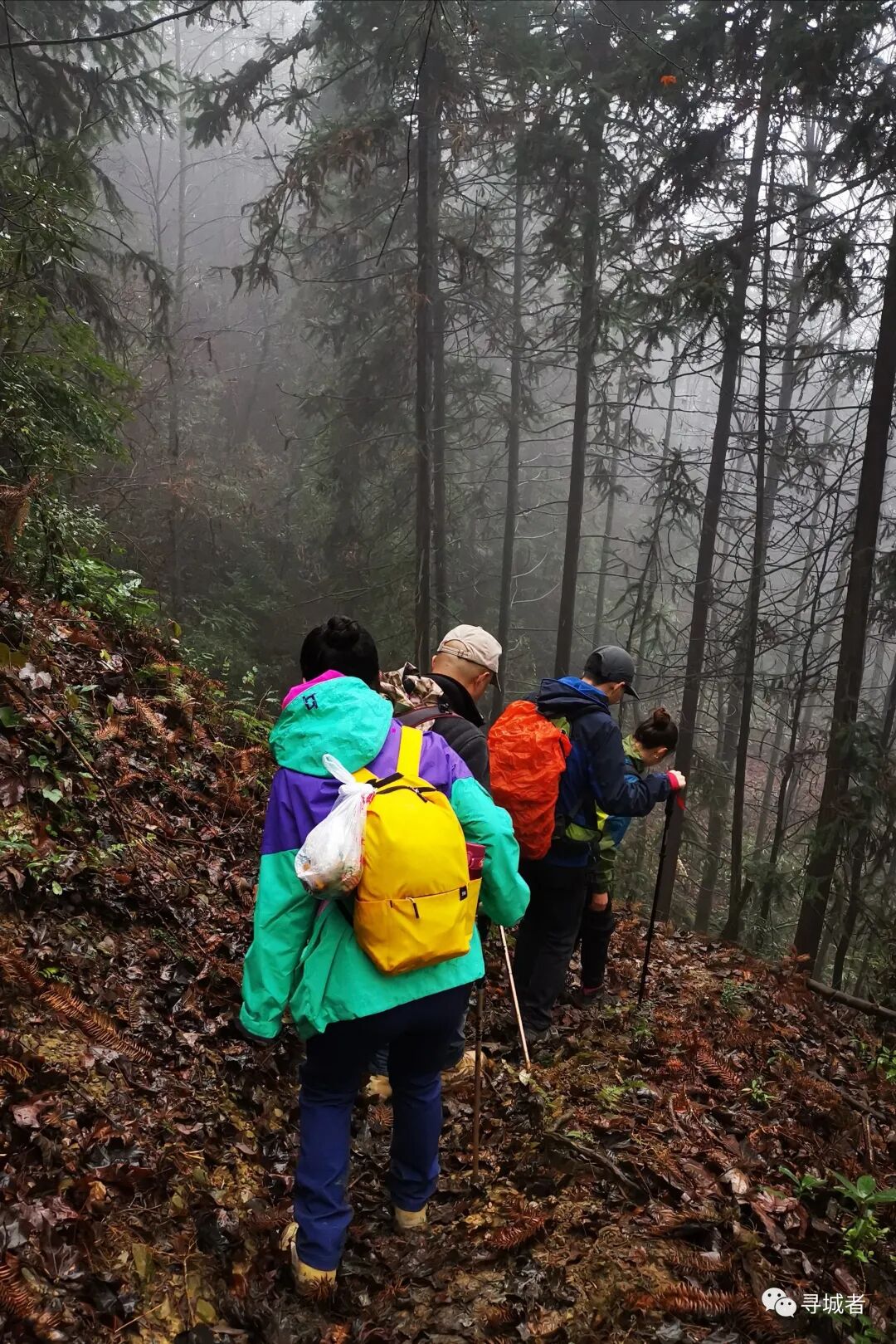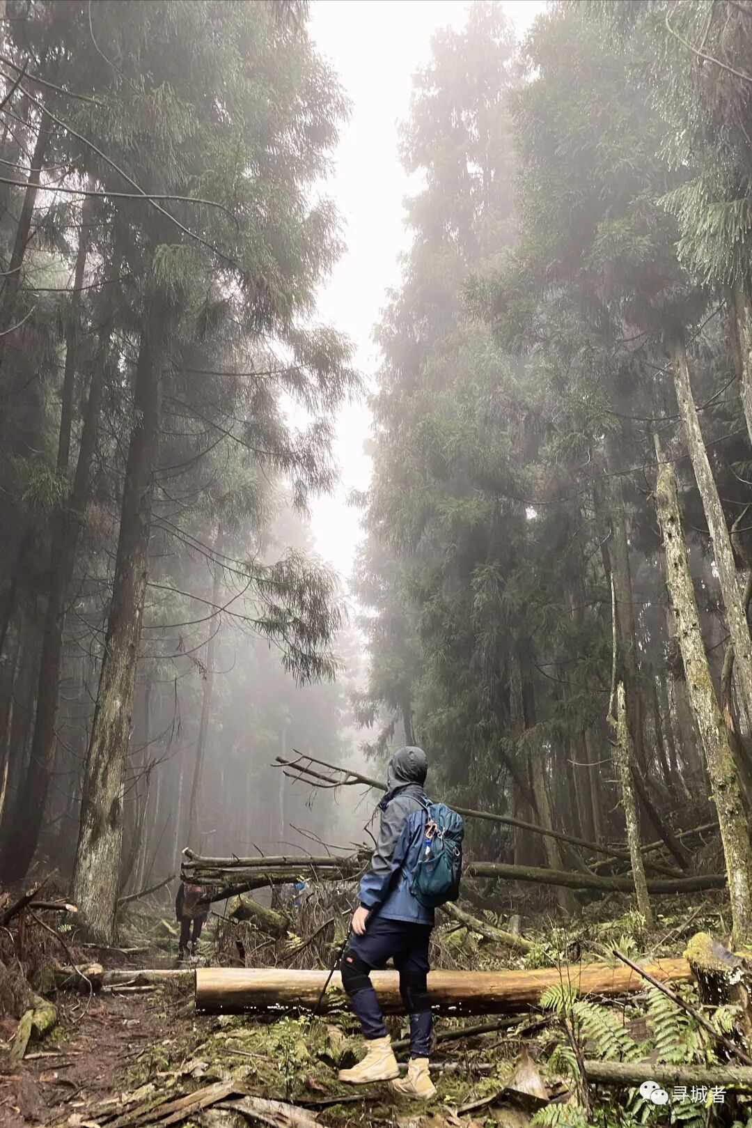 一个多小时的爬升终于来到此行的最高点,满垭口的杉树笔直挺拔的身躯高耸入云,静静的守候着黑山垭口这片原始森林。