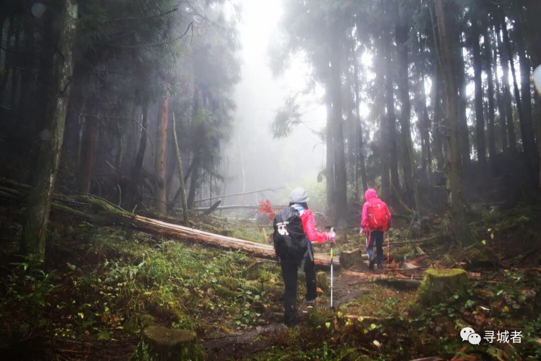 行在雾中的坡地竹林,一定要紧跟队伍,踩踏实前进的每一步,咬咬牙坚持爬上去,黑山终将给你另一番惊喜。