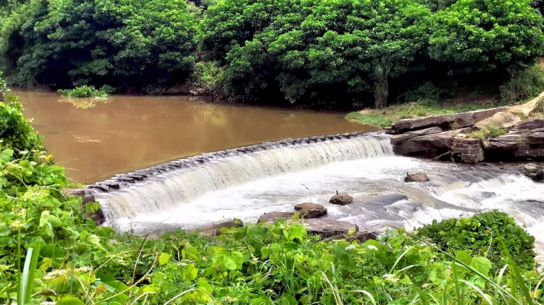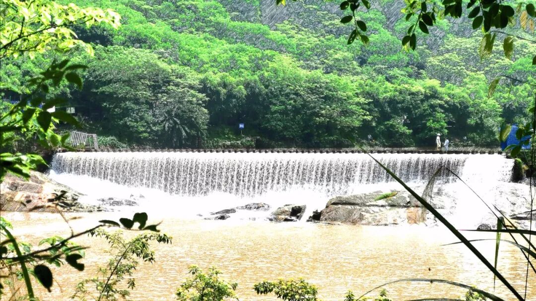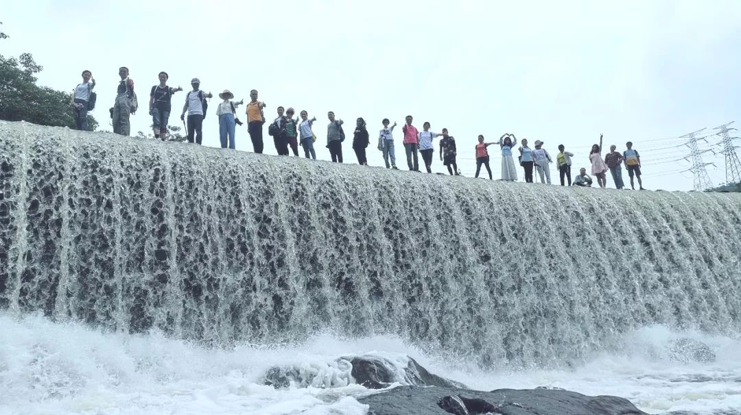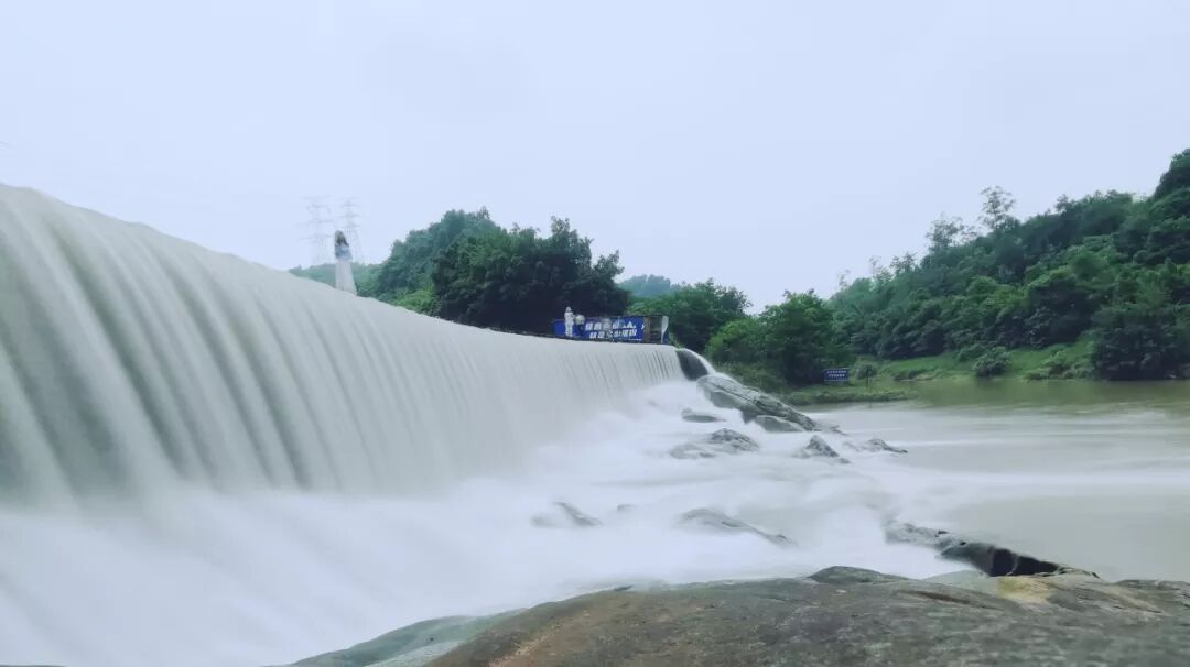 水坝+跳蹬截流形成的瀑布,因前两天充沛的雨水,舒展的水流,恰似喷珠吐玉的美丽 ,彰显它的魅力。