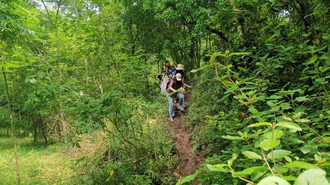 世界上本是有路的,只是有些地方因为久未有人走,大自然的规律让它再度回归荒野。感谢每一位的坚守,终于爬上又一座山头,来到了鸽子沟水库边上的菜地,鲜嫩的黄瓜让众小伙伴解渴解馋不已。