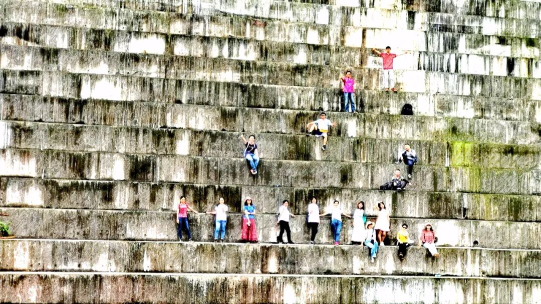 原谅我手机片打个样,玻璃栈桥下河边坝底的楼梯也是很有层次感,在老法师的镜头里应该会出大片。