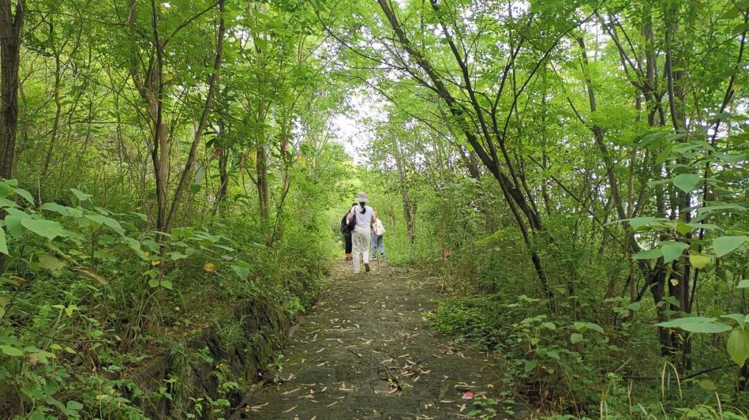 穿过鸽子沟水库,继续往上攀爬最后一座山头,因城市建设再度挖断的道路让小伙伴再一次穿行在密林之中,目标让我等小伙伴继续收拾好心情和体力,继续完成今天最后的行走。