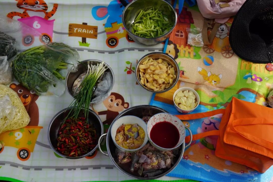 每一次野炊,分工自是必要且重要的,前端洗菜、切菜、备料,后端的搭台、垒灶、寻找柴火,每一个人都倾力写协作,就地取材让这次野炊变得更加便捷。