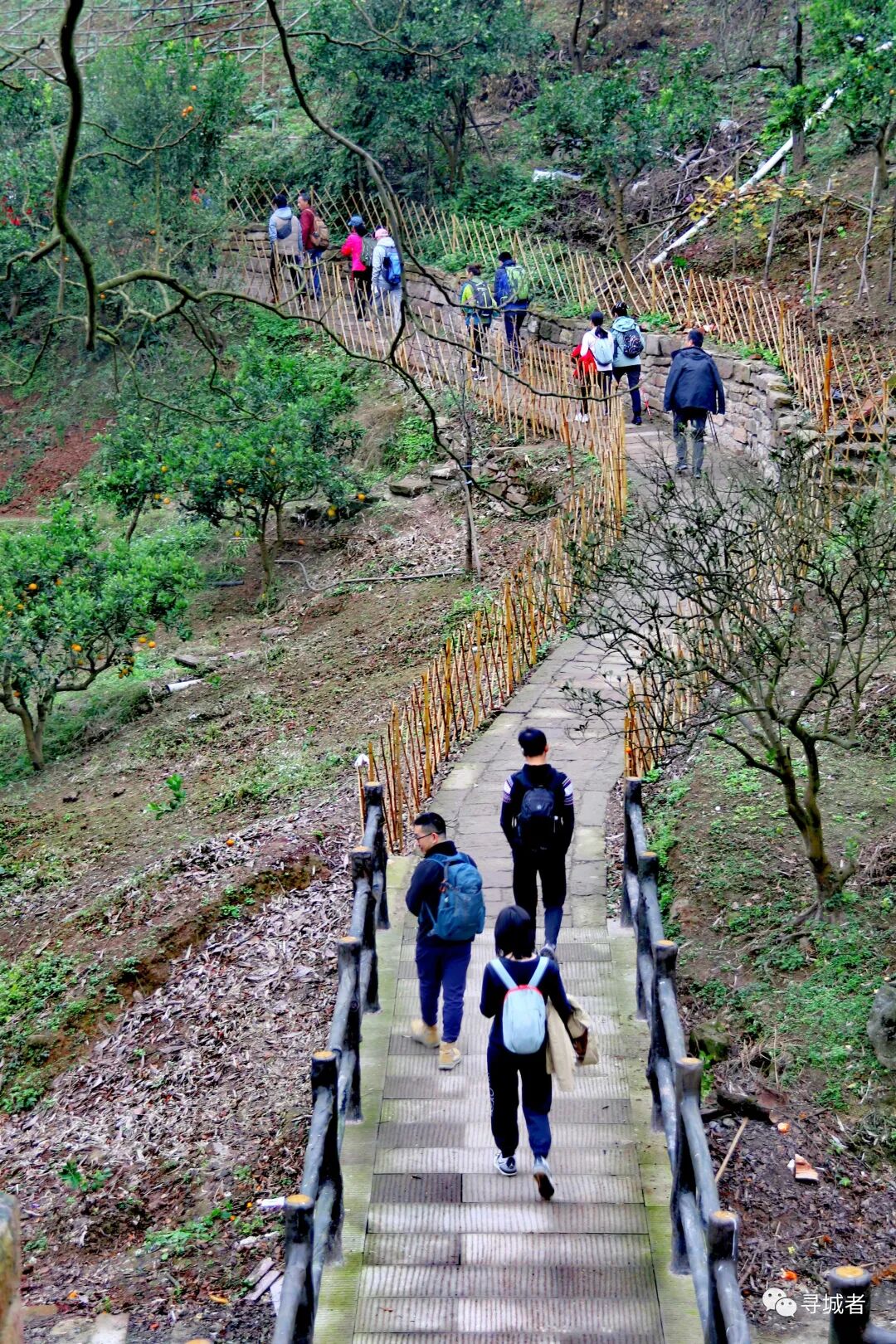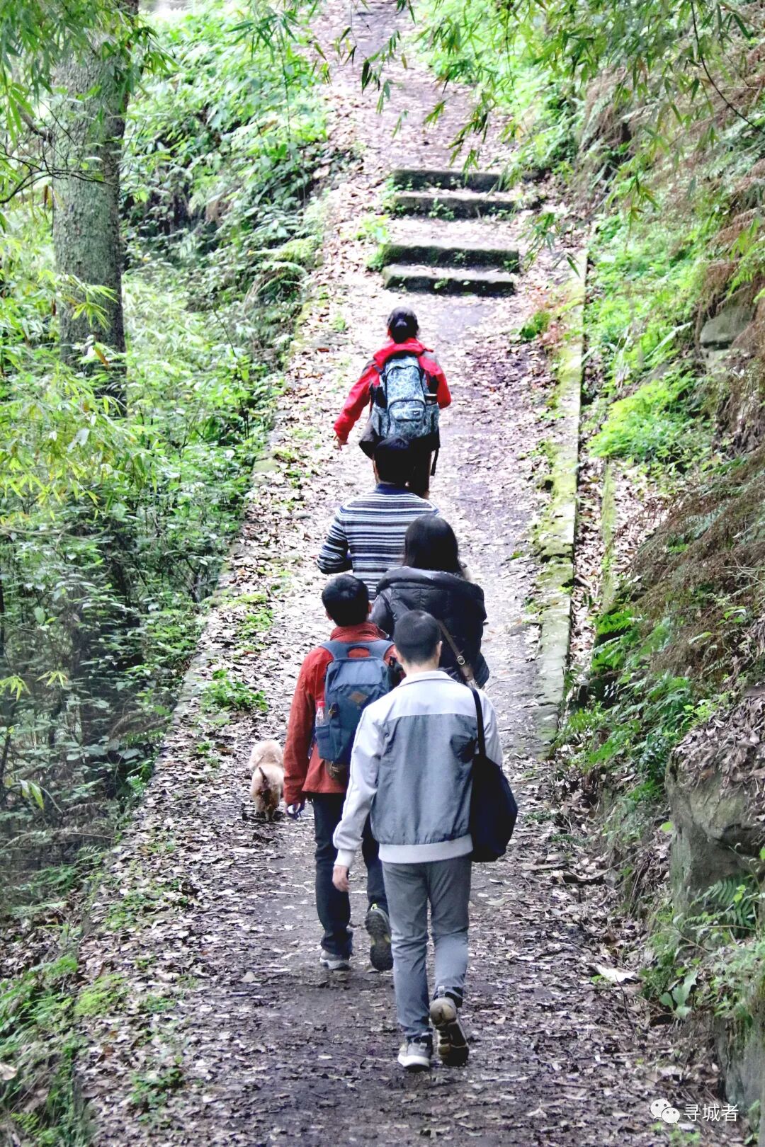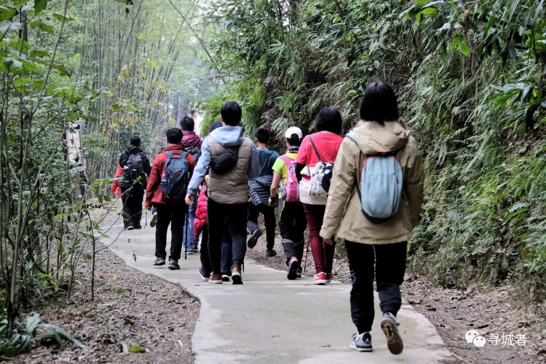 沿着缙云古道(姑且称之为缙云古道吧,确实努力了,没有找到过多关于它的资料)继续往下穿行,渐渐离开沧桑的古道进入新修的健身梯步道之中,前面的铁脚板早已跑得看不到了尾灯,随着扫尾小队慢悠悠的享受下(DA)山(TUI)时(CHOU)刻(JIN)。