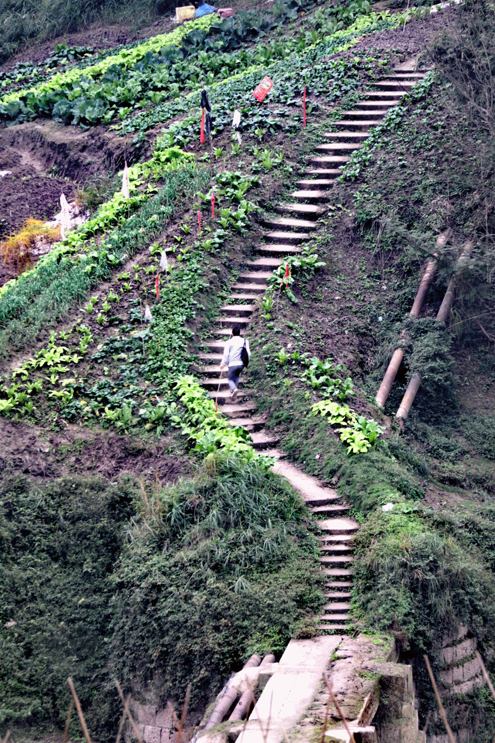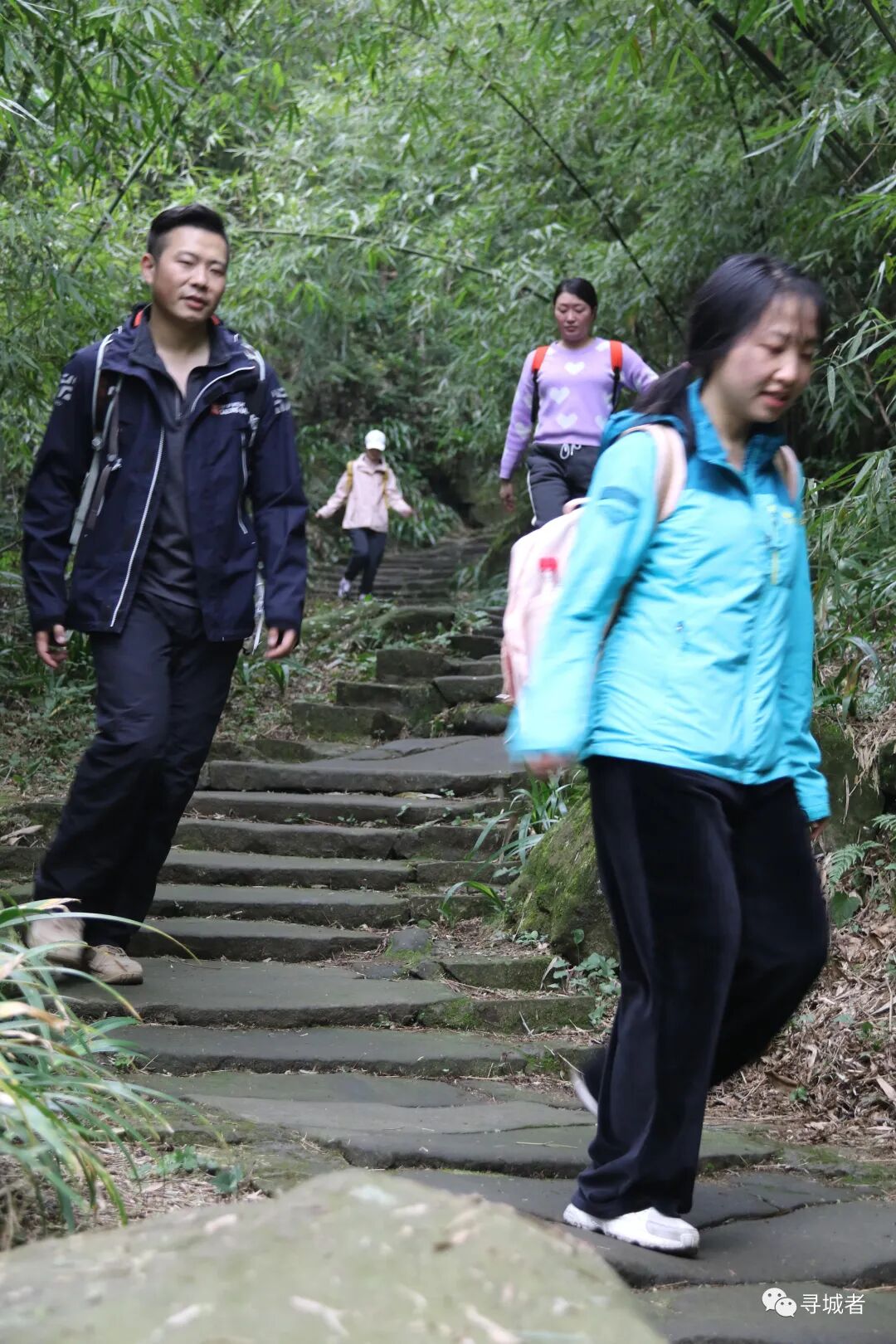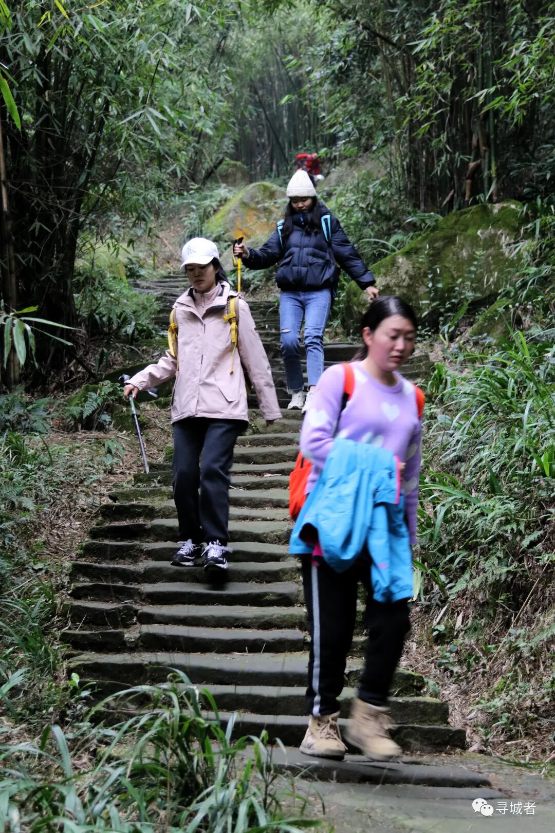 沿着缙云古道(姑且称之为缙云古道吧,确实努力了,没有找到过多关于它的资料)继续往下穿行,渐渐离开沧桑的古道进入新修的健身梯步道之中,前面的铁脚板早已跑得看不到了尾灯,随着扫尾小队慢悠悠的享受下(DA)山(TUI)时(CHOU)刻(JIN)。