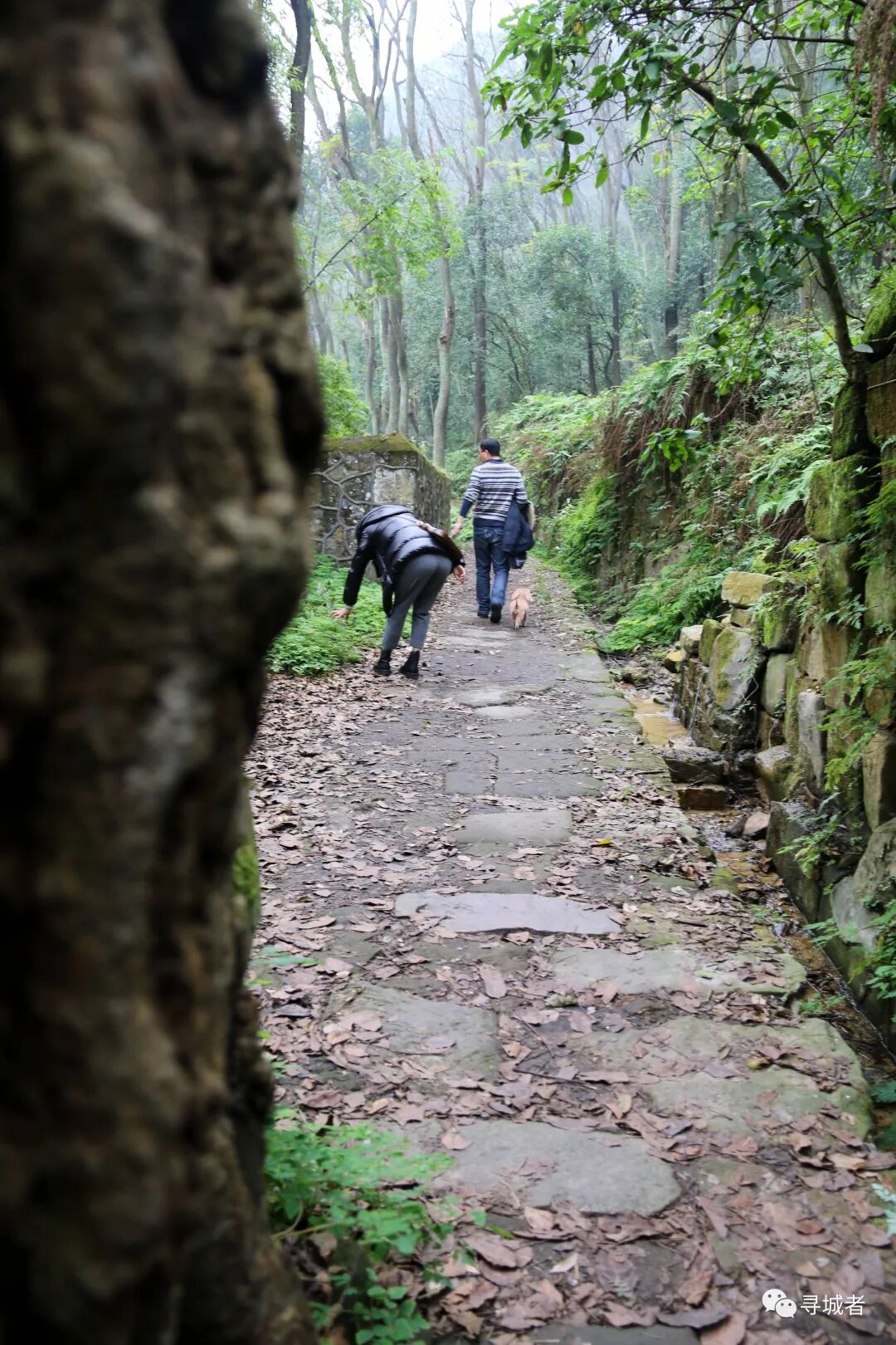 沿着山野里突遇的湖泊边小路拐入山林之中,一番紧锣密鼓的穿行进入缙云山的步道之中,许久未曾有人涉足的梯坎儿铺满落叶,软软的让人舒服得不想挪步。