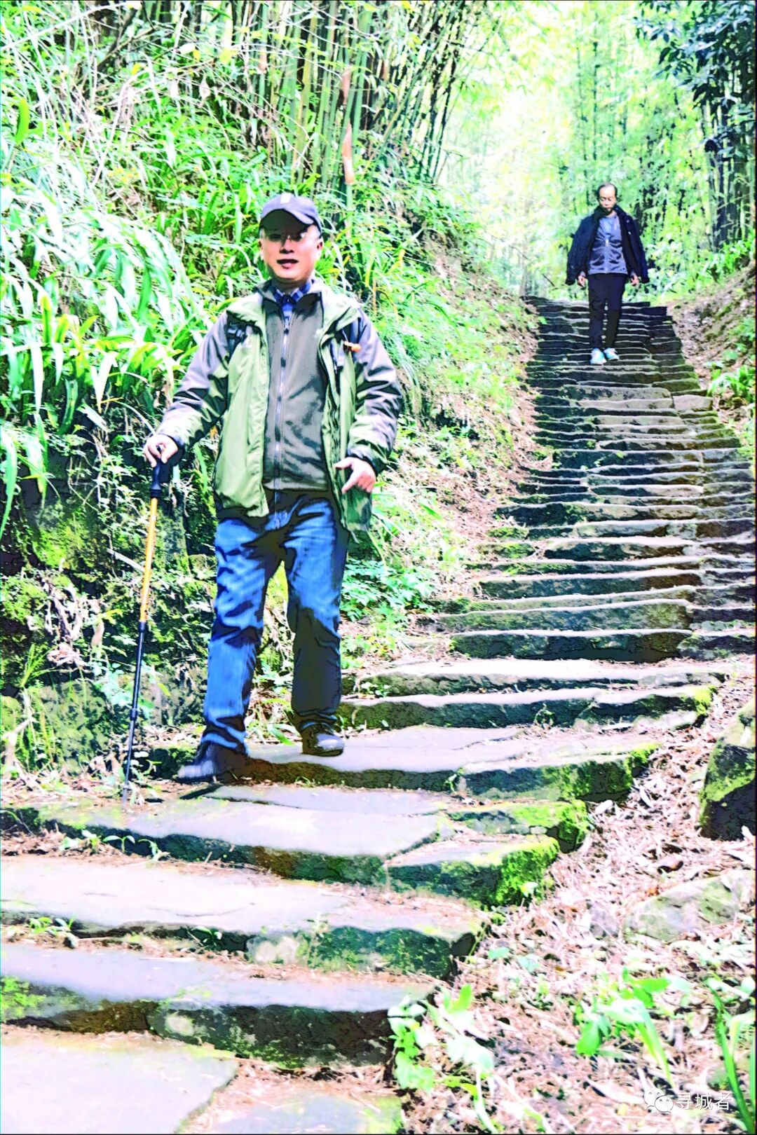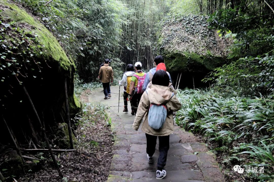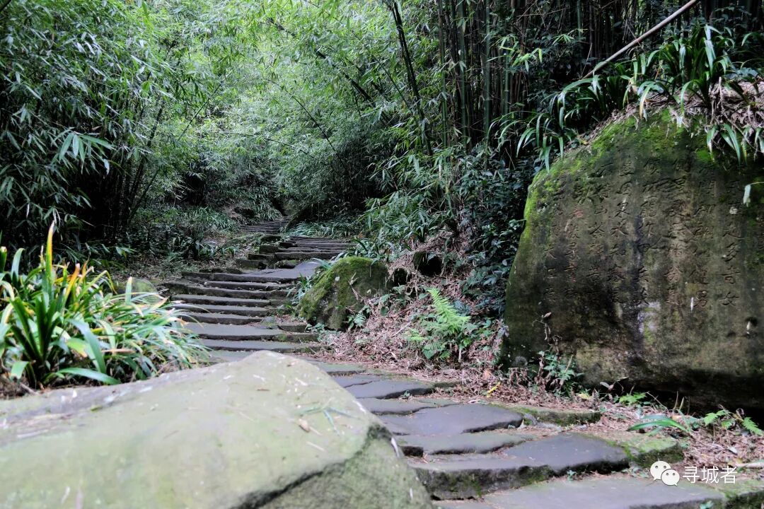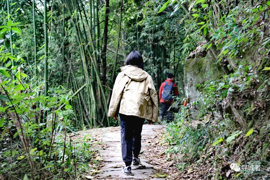 从白云竹海进入竹海古道,四季常绿的竹林间掩映着条石古道,宽约两米的条石板铺砌在竹海之中,经年累月的踩踏早已让石板路光滑可鉴。