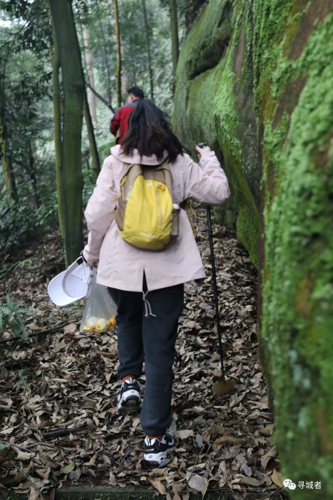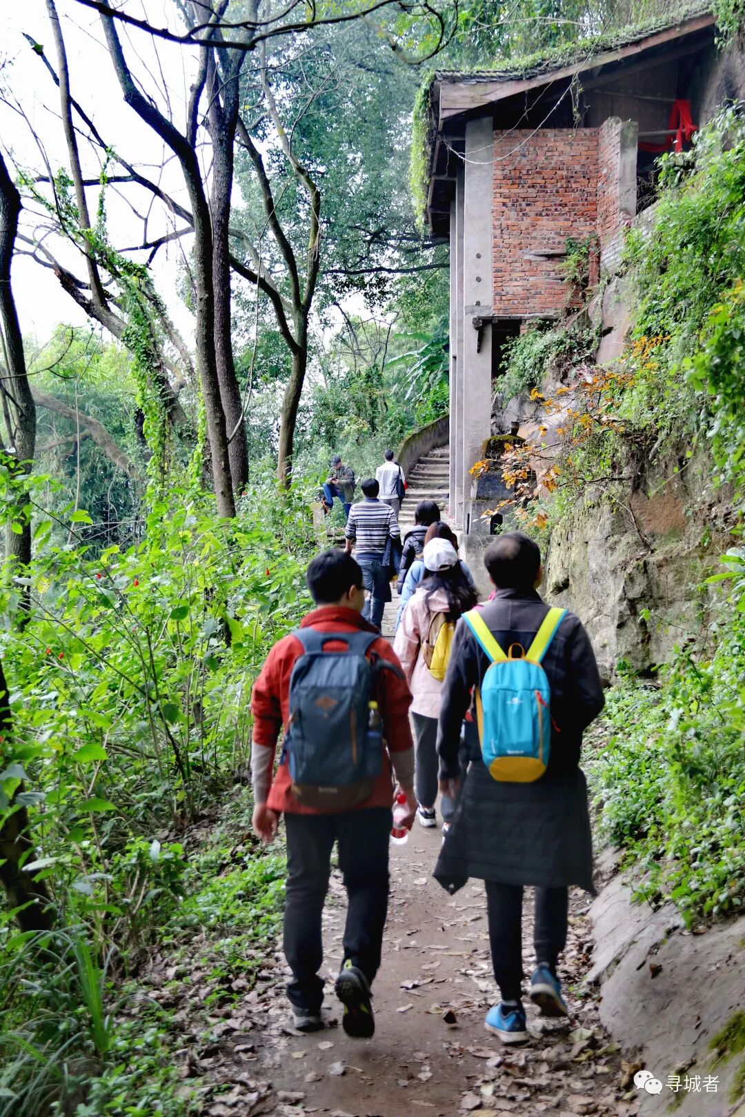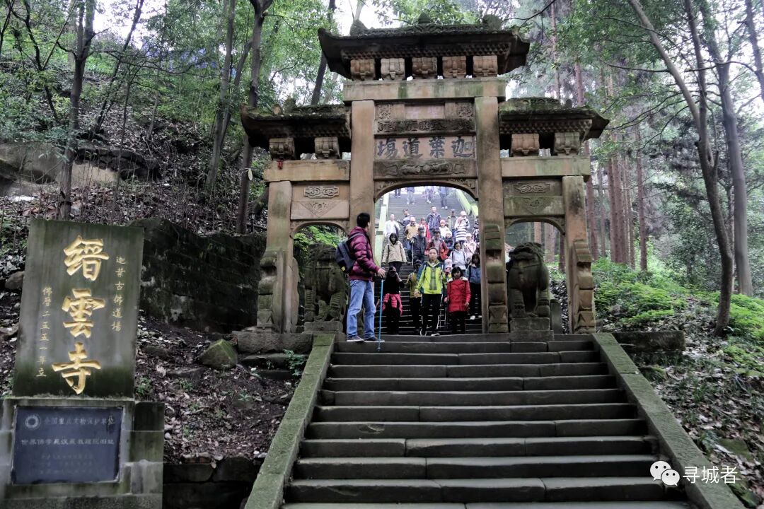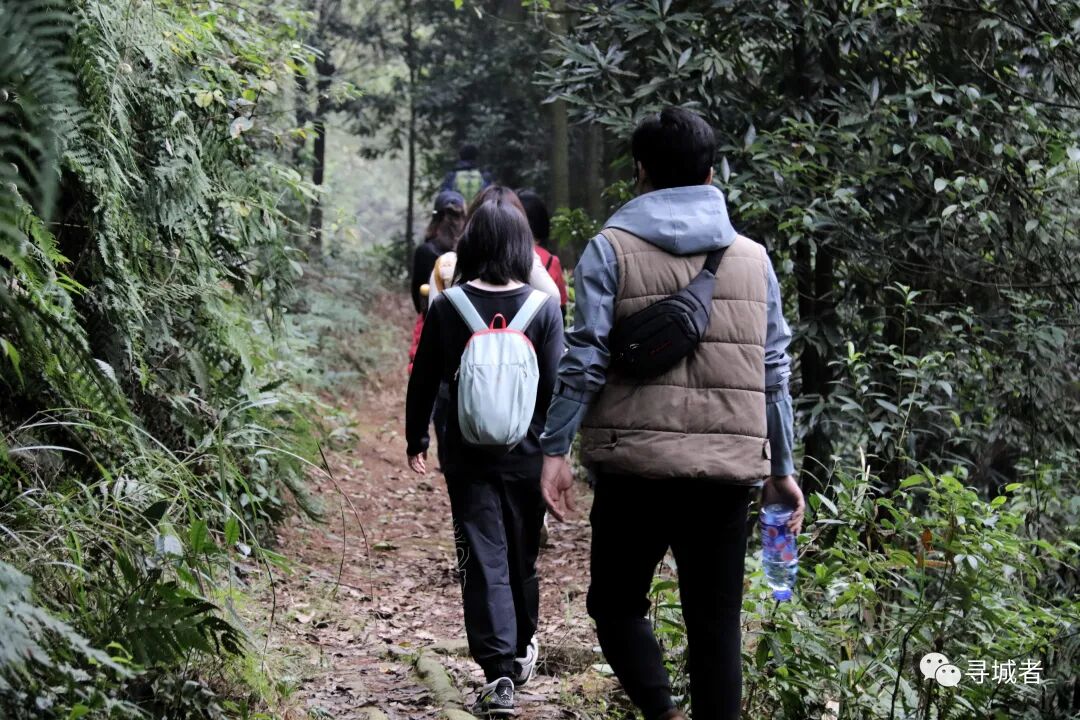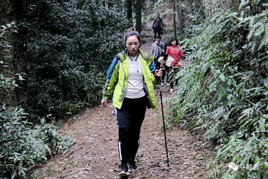 穿过山间崖壁边上的步道,随着蜿蜒的步道转过一个又一个的山梁和沟谷,一行人靠着毅力渐渐接近缙云山峰顶。