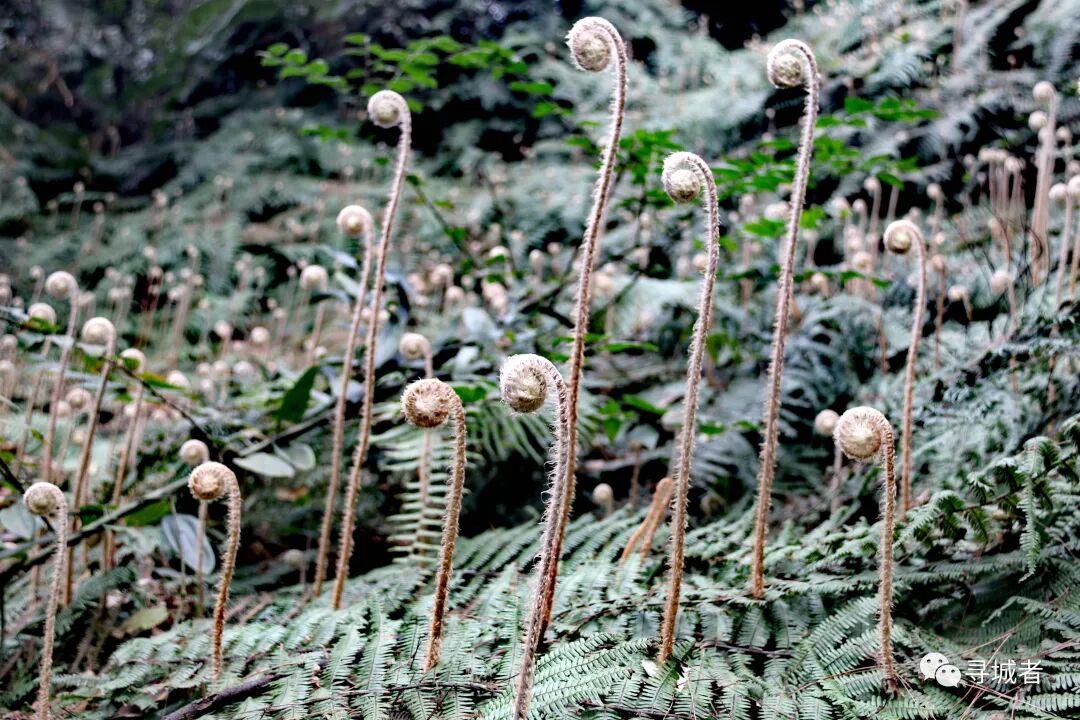 穿行到半山腰之上,山野孕育的汩汩清泉流淌,路边取水烧茶的大爷依旧满脸笑容;而林下地上的蕨类已经延续生命的探索,一个个对自然振聋发聩的问答层出不穷。