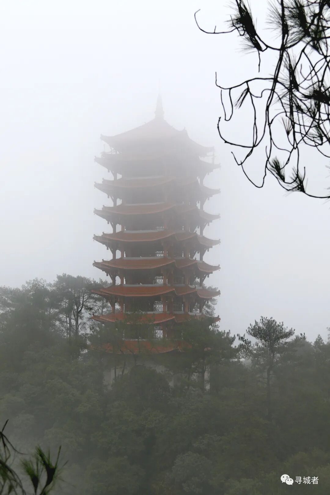 缙云山有七峰,一峰一景各有各的特色。说好的雨水也许是全部转化为雾气,山顶的云雾笼罩着高塔,也笼罩住了一座城市的好梦。