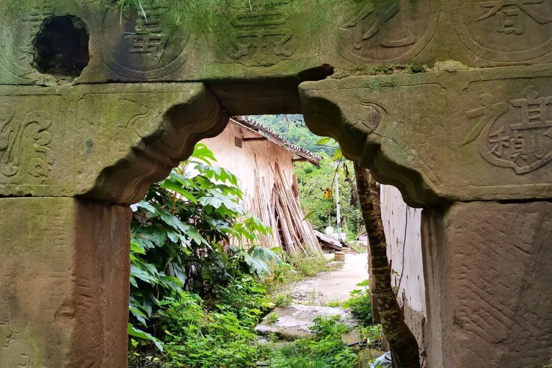 从铁壁寨的上寨门进入,穿过寨墙内的夯土瓦房,穿过许多残留的废墟残垣,不过数分钟都可以从下寨门而出,门洞上的石刻早已风化模糊。