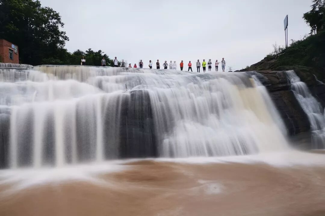 作别提前回永川的徒友,暴走小分队继续最后的打卡,沿着公路绕着水库行至仁睦滩,期待已久的瀑布开始由声及形开始出现在大家的路上。