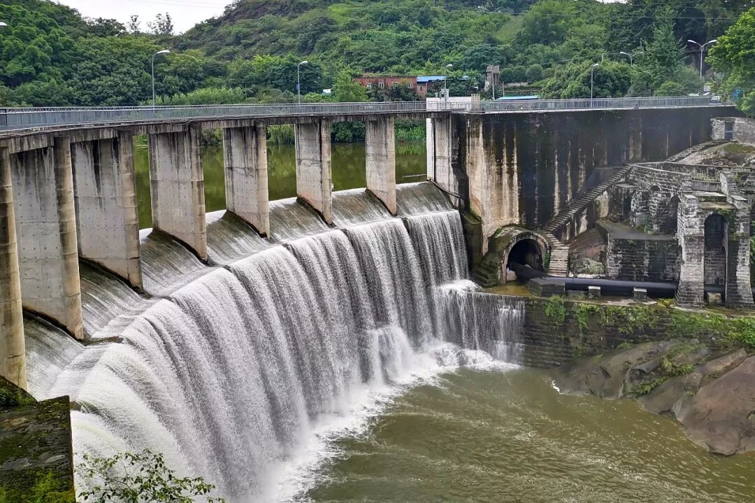 东方红水库颇有些年代感的味道,条石加钢筋水泥建造而成的水库大坝因水源充沛形成了漂亮的瀑布景观。