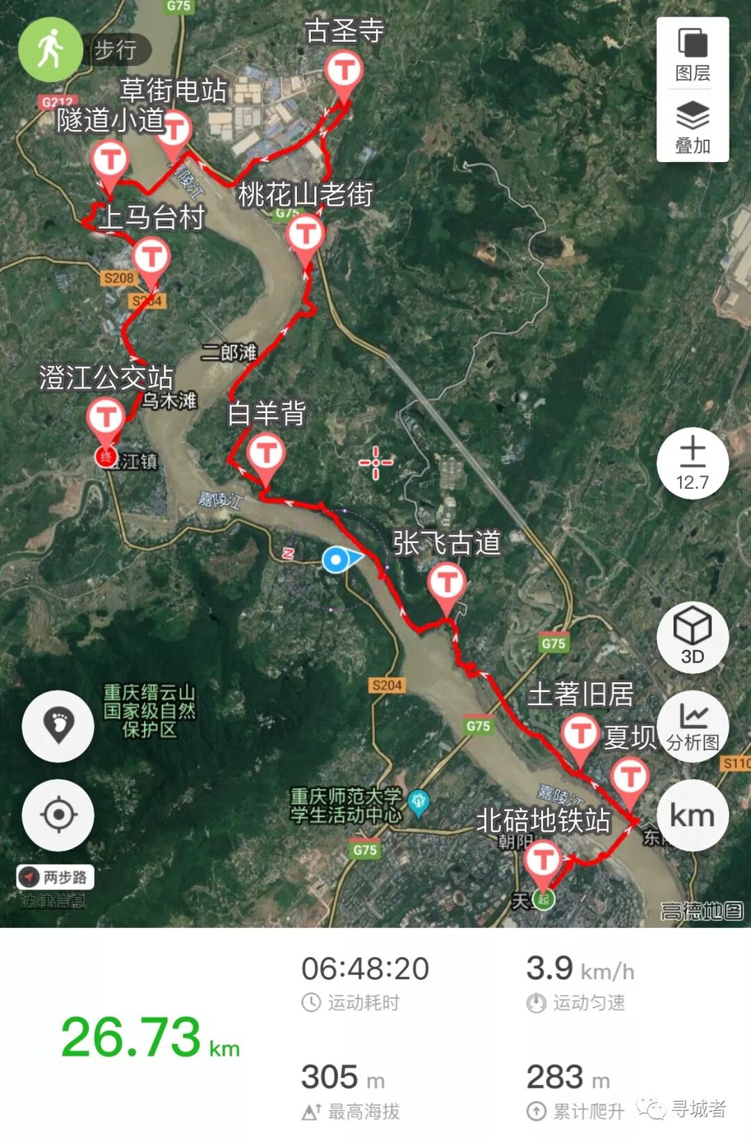 关于此行程,谁走谁知道,若非真心钟爱走路且能走路的小伙伴,个人建议是可以有两个撤退点:一个是走到白羊背的时候可以撤退,直接轮渡至江对面的运河村。另一个撤退点为古圣寺,然后就乘坐当地到北碚的中巴车返程。