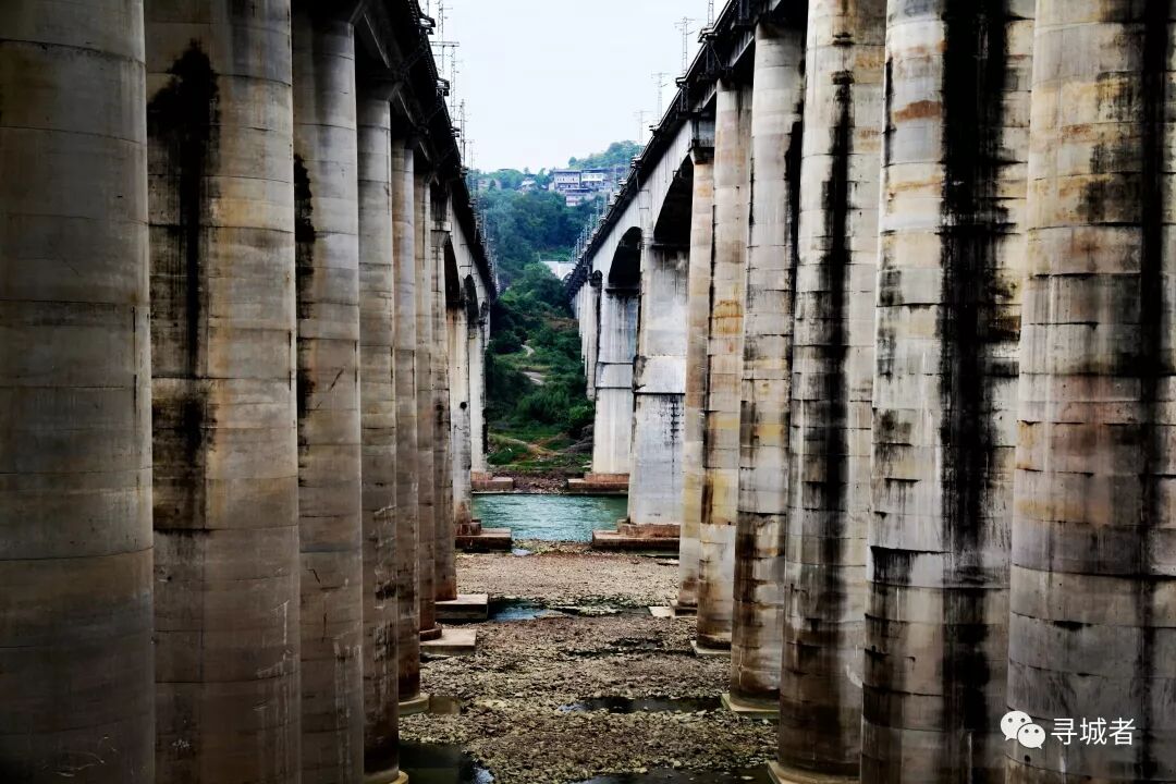 沿着嘉陵江边新挖出来的机耕道路前行,会穿过横跨嘉陵江上的两座铁轨专用桥梁,十多个桥墩依次排列立在嘉陵江的砂石滩上,很有气势。