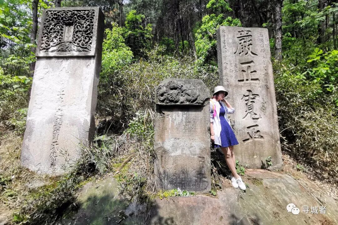 继续沿着步道往下,穿梭于步道两旁的森森翠绿之中,也穿过三仙洞破败之后留下的路边小庙子,转过一道道山坳之后,赫然出现在古道边上的就是三道碑。