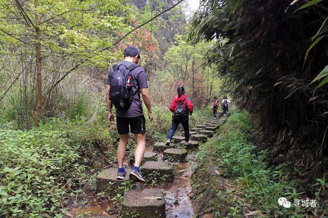 弯弯曲曲的古驿道随着山势起伏在深山竹林里蜿蜒盘转,无数踏过的足迹早已让棱角分明的青石古道变得圆润光滑。