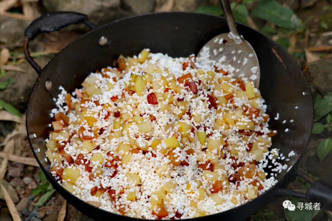 大米加适量糯米浸泡半个小时,水分会让它更加饱满圆润。腊肉和土豆切丁,放入锅中炒出油香,再融入新鲜竹筒的身躯之中,再次交给清水,大火炙烤再加文火慢焖出香,美味竹筒饭的出锅不再是记忆中的幻想。