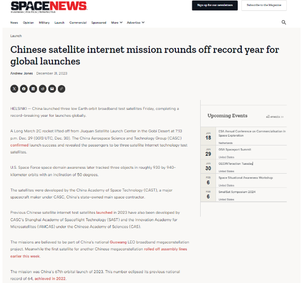 特别是中国的卫星互联网技术试验卫星,是美国跟踪中国卫星的重点对象,因为这颗卫星是中国在轨测试卫星互联网技术的先行者,也是中国星网建设的重要一环。