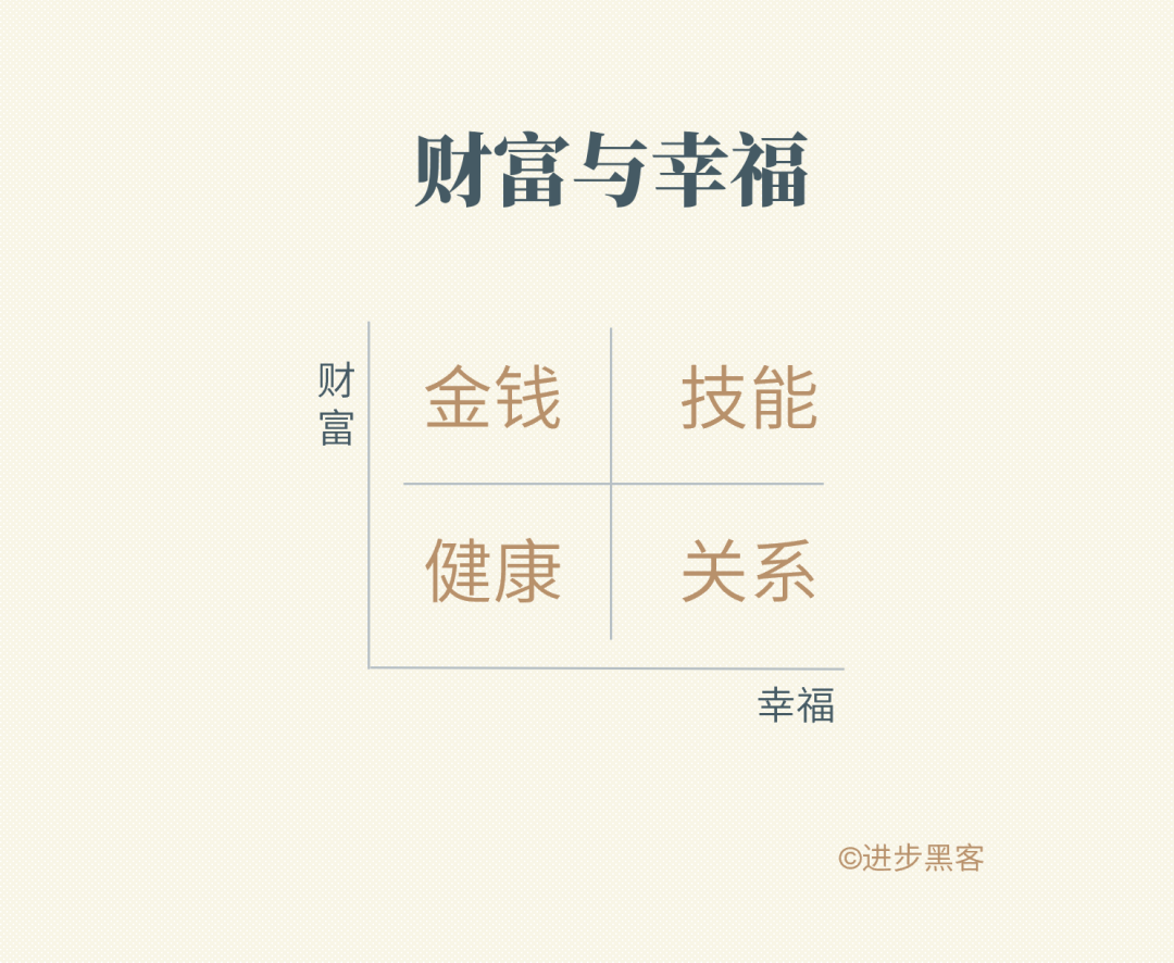 技能对财富和幸福两个轴影响都大,也是可掌控的