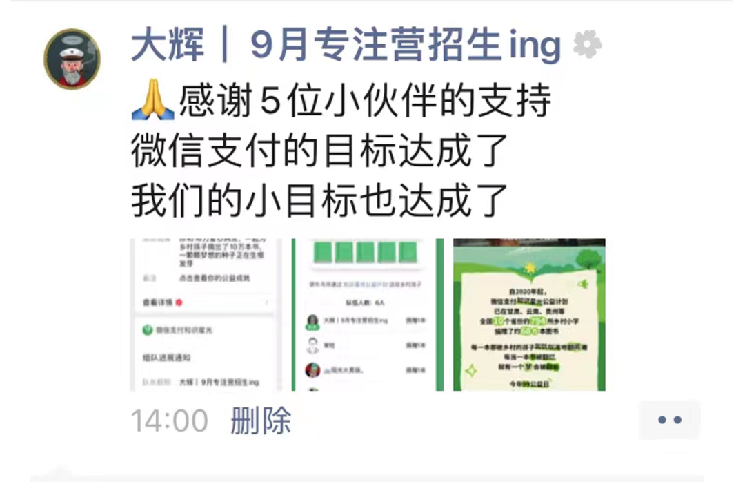 第五次发圈,达成目标后感谢,完成闭环。
