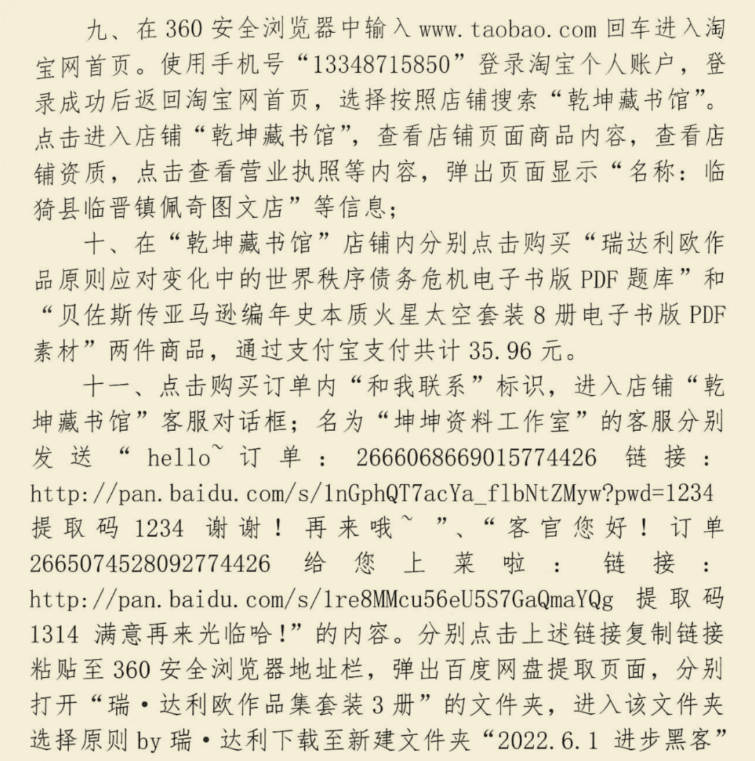 我没有靠传播此书获利。但在侵权证据中,却莫名扯进来一个淘宝店《乾坤藏书馆》,还下单支付了与侵权无关的电子书,我有点看不太明白。