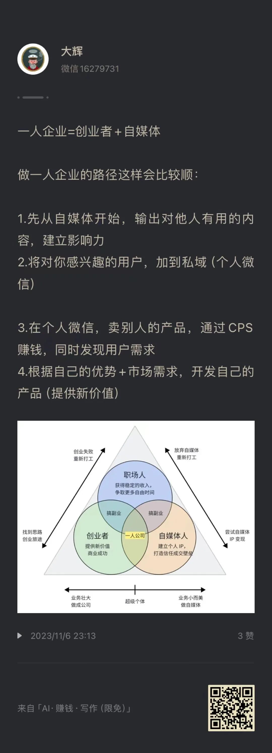 「一人企业」并不是指一个人去做所有的工作,而是通过高效地利用数字工具和平台,最大化地发挥个人的影响力,从而实现商业价值。