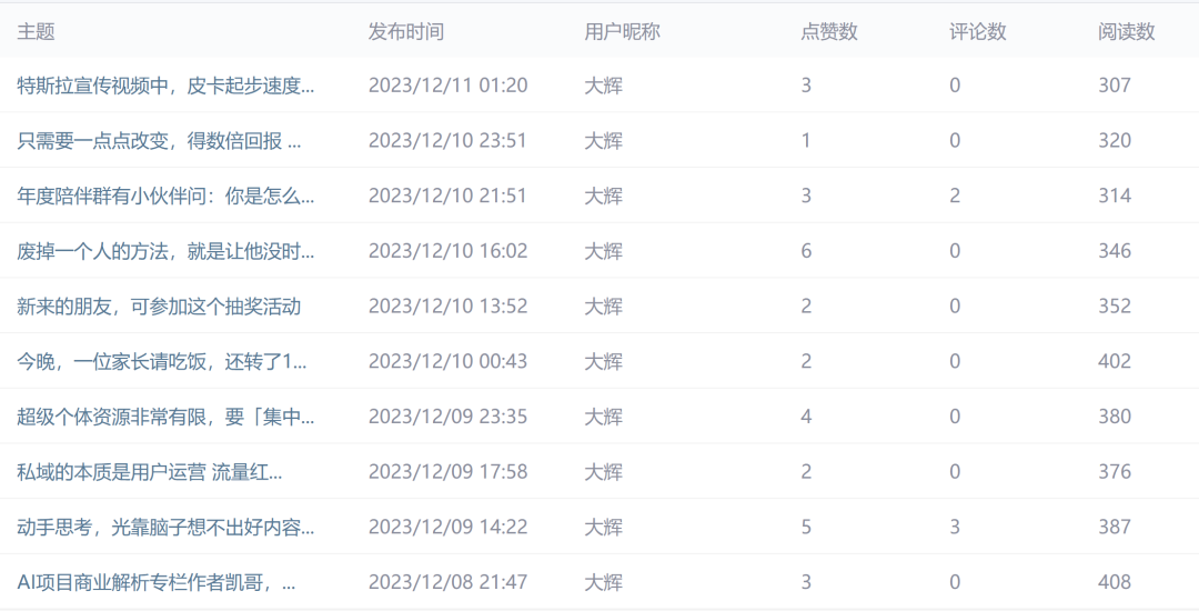 这是我后台截图的数据,打开率在10%以上,也就是说,3000人的星球,每篇帖子会有300以上的阅读。
