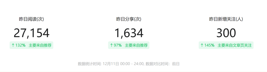 我昨天公众号的阅读量2.7万,这个数据不算很大,但我写的主题是个人成长,偏商业类的话题,信任强,用户质量高。