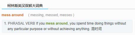 mess around 还可以表示“胡闹”:英文释义:If someone is messing around, they are behaving in a joking or silly way.