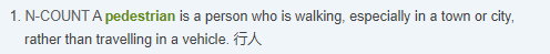ped是脚的词根,pedestrian的名词意思是“行人、步行者”: