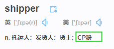 英文解释:“A fan is called a 'shipper' when they support a relationship, whenever it's canon(原作/官配) or not. ”