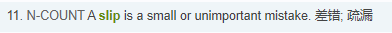 了解了slip的这层意思,a slip of the tongue就很好理解了,舌头打滑那不就是舌头没有在它本该在的位置而导致了说话说错了。