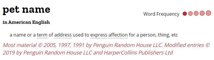 就比如一个比较经典的误区,老外问你“pet name”时,千万不要理解成“宠物的名字”,原因是啥呢?我们接着往下看 ↓