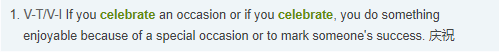 提到celebrate大家可能还会想到另外一个词汇congratulate,虽然它也有有“庆祝,祝贺”之意,但是普遍是指对他人祝贺为目的,希望他人幸福或走运。