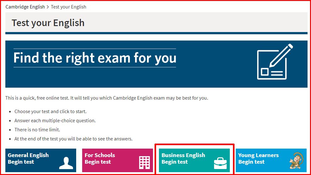 点进去后,有一个【Business English Begin test】,很适合一些在BEC中高级中纠结的小同学自测。
