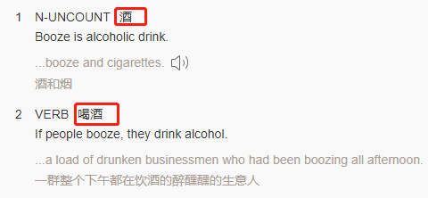 其实,喝了很多酒用一个单词就可以搞定,这个单词就是booze,我们来看一下它的英语解释:
