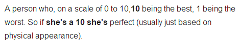 不跟大家卖关子了,“she is a ten”其实是一句很常用的口语,尤其是在美剧里,用的频率那可真是高的嘞,这个表达专门用来形容好看的小姐姐