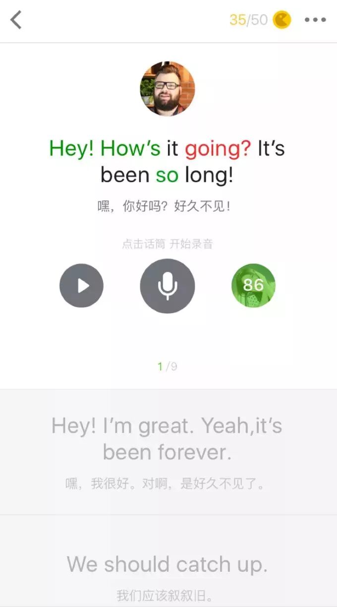 这是一款好玩又有效的英语口语学习应用,它的课程学习模式主要是语音讲解—跟读—评价—闯关。配有实时语音评分技术以及好玩上瘾的对话闯关游戏,可以让我们轻松愉快地练口语,不知不觉“流利说”。
