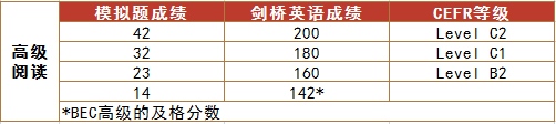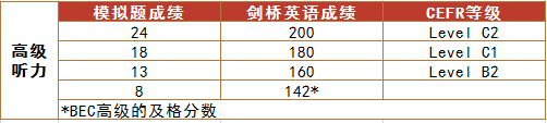 正确率在60%以上,BEC中级剑桥英语成绩就会在160,高级在180以上,也就是说这一科目你是通过的。