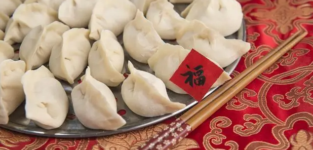 在南方,习惯吃“rice cakes 年糕”,意味着“步步高升”;还有些地区的饭桌上则少不了鱼,象征“wish for an increase in prosperity year-after-year 年年有余”;在北方,年夜饭的传统主食少不了“jiaozi/dumplings 饺子”。