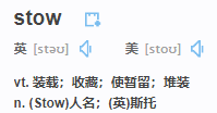 这样看起来有点长,我们可以把它拆分来看,“stow”是一个动词,表示“妥善放置”,或者是“把……收好”:
