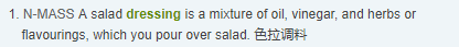 通常是指拌制色拉用的调料。比如“salad dressing”就是“沙拉酱”的意思;“Italian dressing”就是“意式沙拉调味酱”。