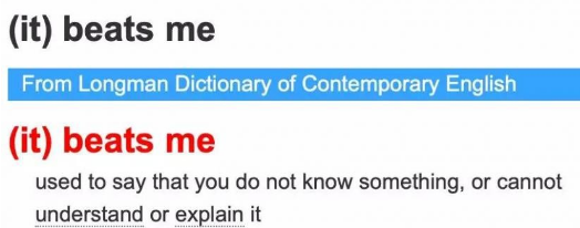 其实从字面也可以理解的,因为“beat”还有一个意思是“打败”,那“beats me”就是“打败我了”也是没毛病